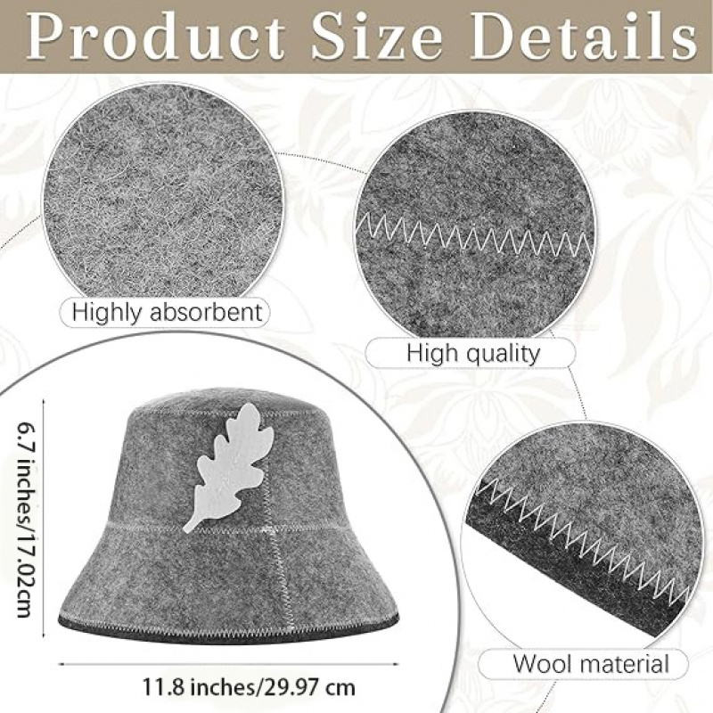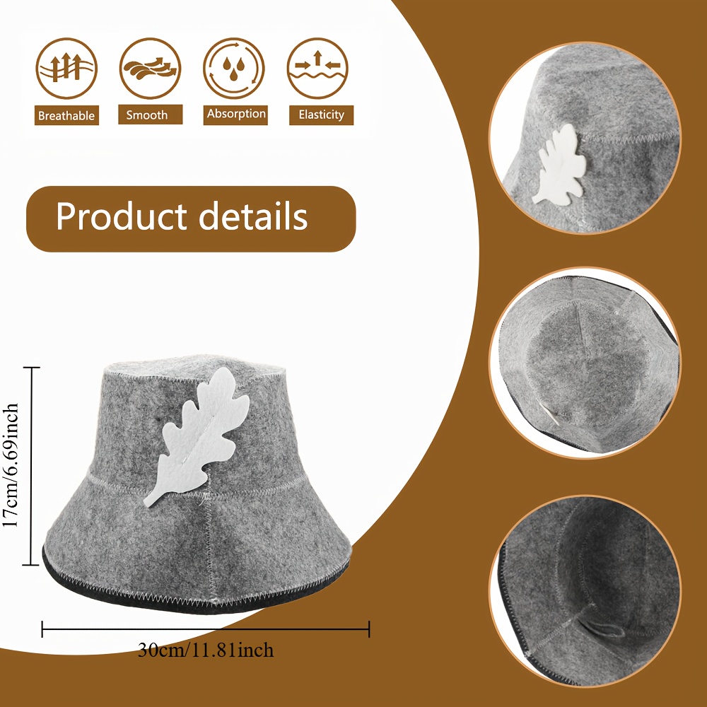 Weiterführende Links zu "Saunahut Wollfilz, Filzbadehut Saunamütze grau mit Blatt"