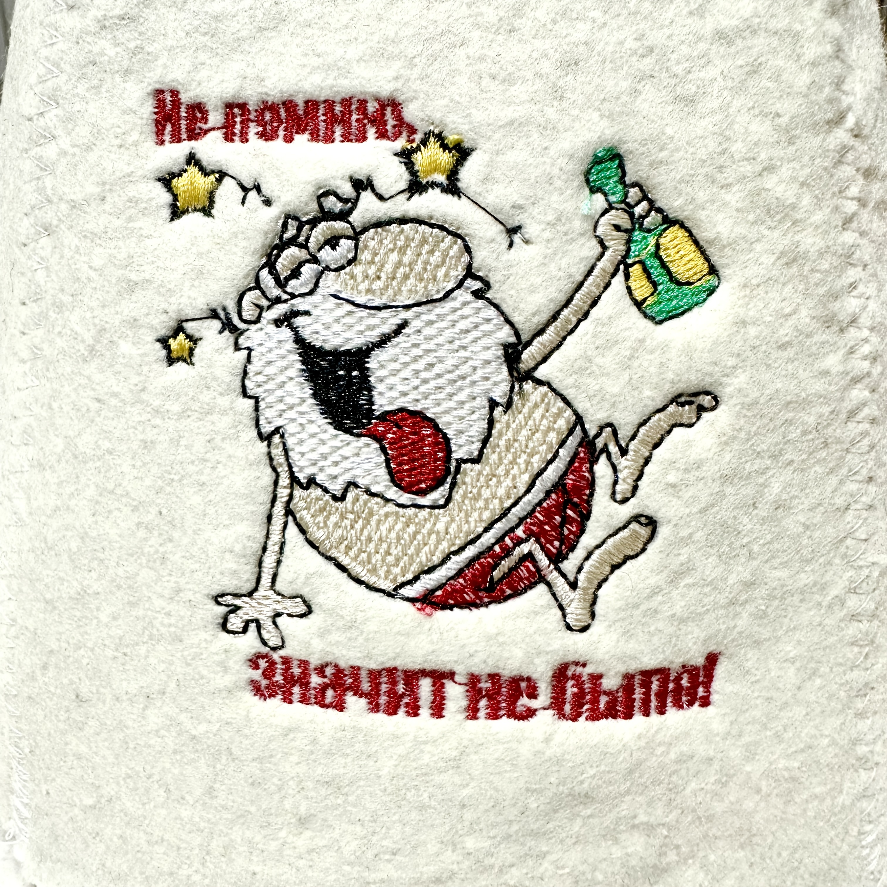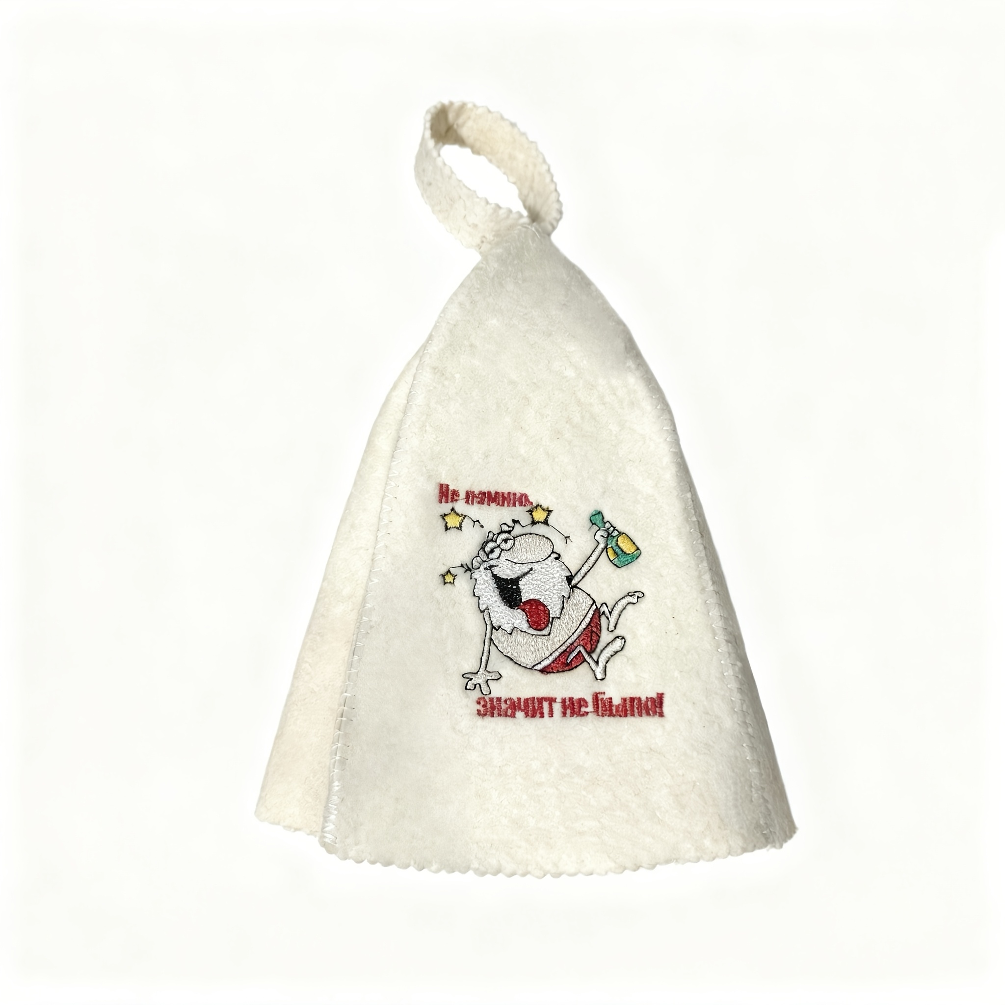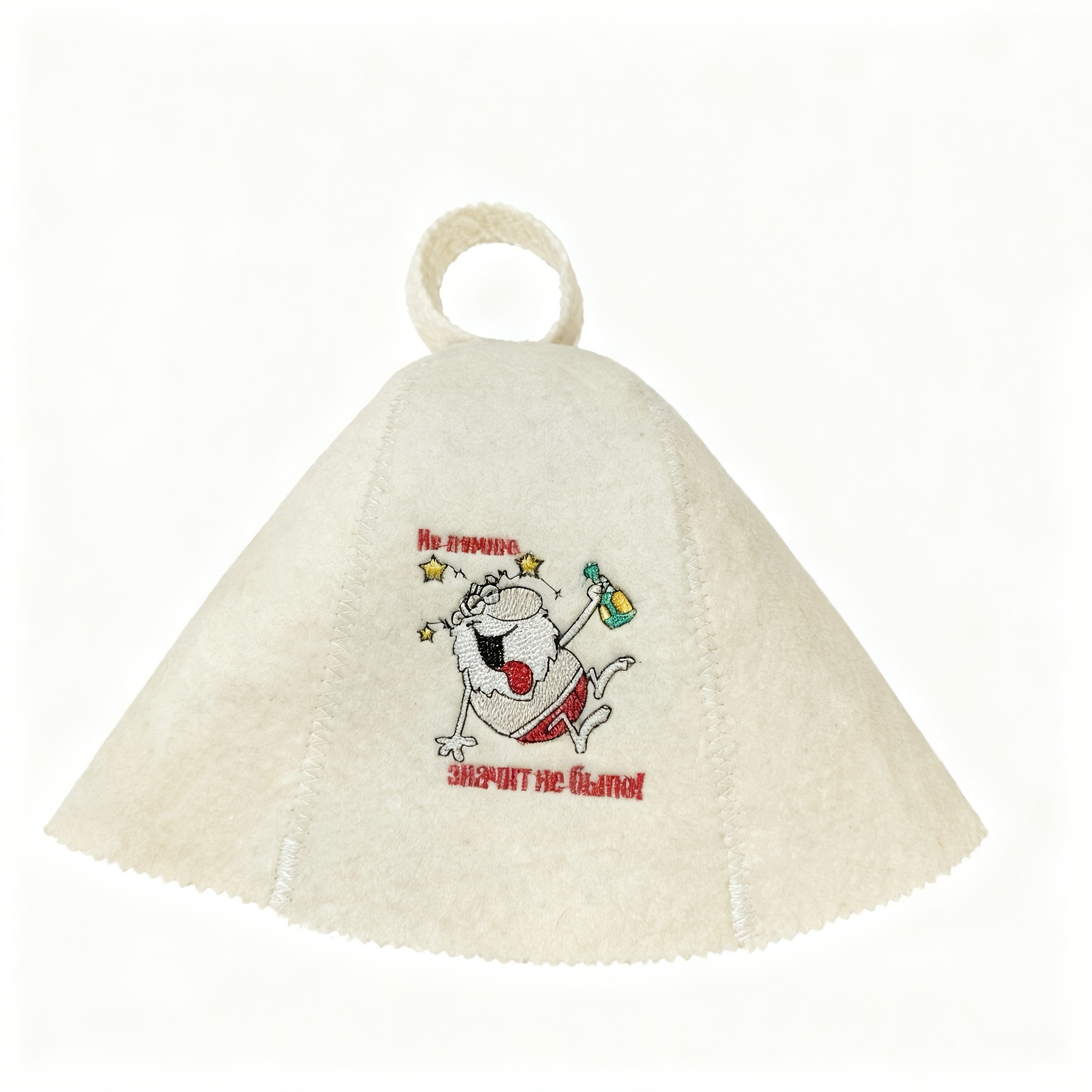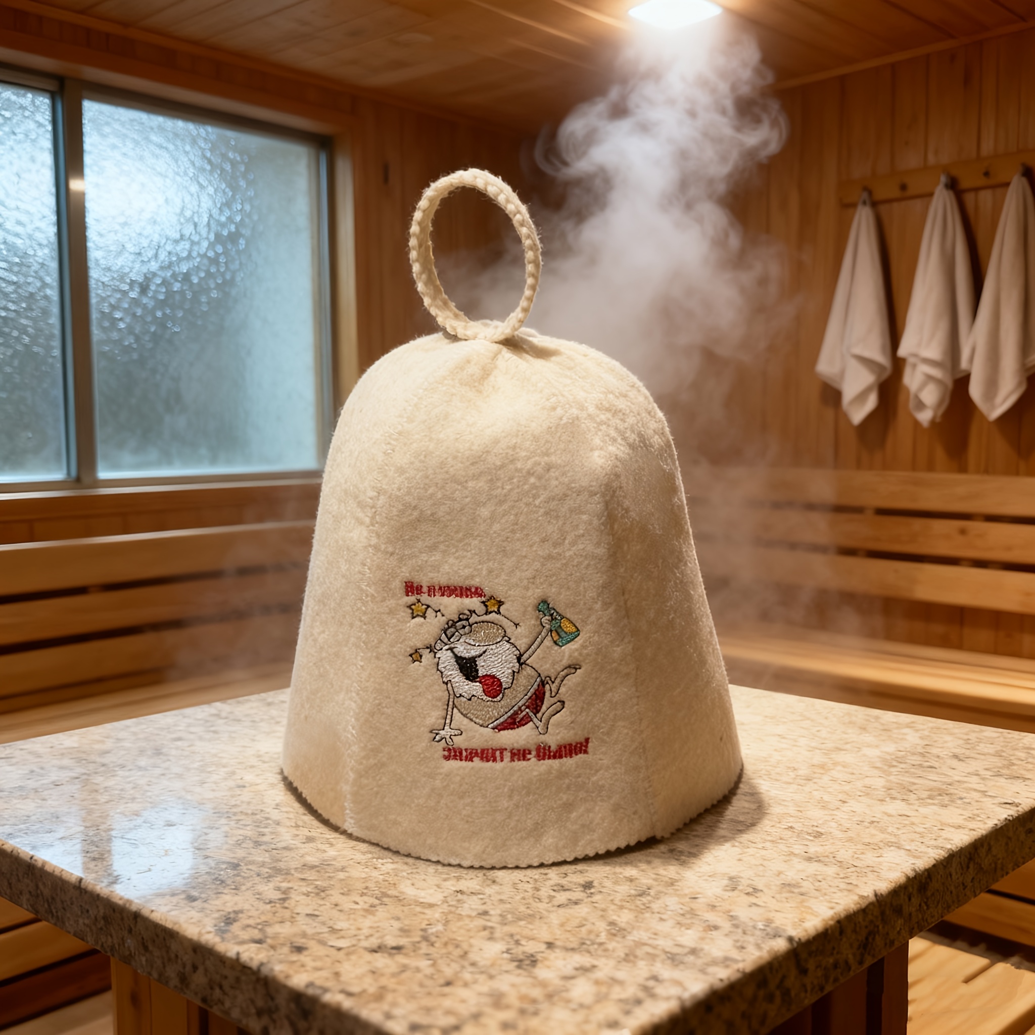 "Saunahut, Filzbadehut, Bademütze Wollfilz, weiss mit Bild"