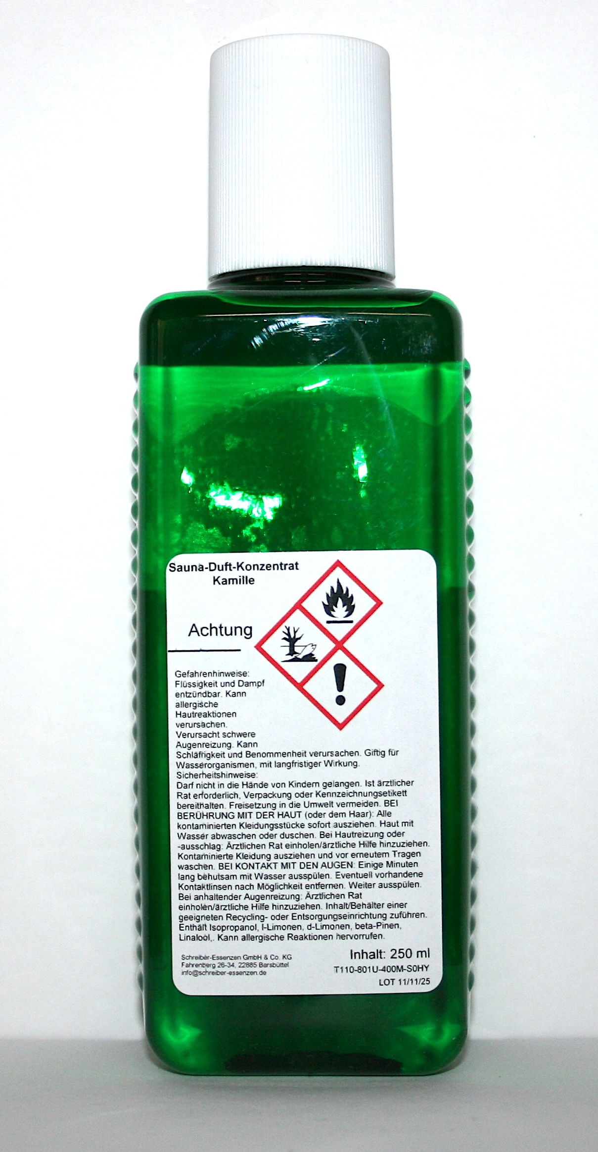 Lieferumfang: 1x 250 ml Saunaduft-Konzentrat Kamille