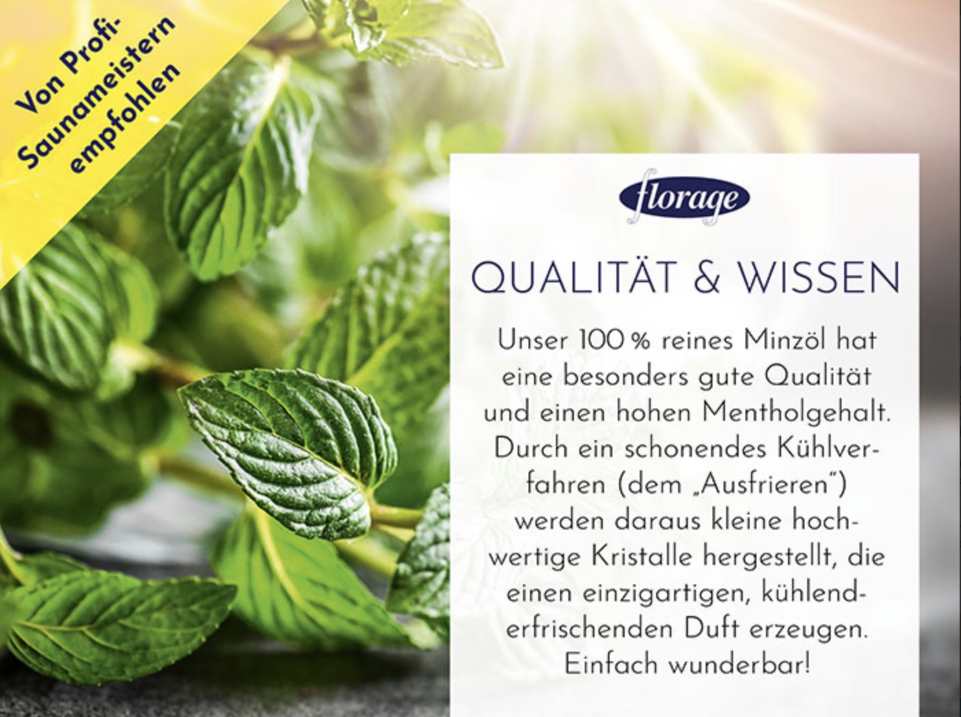 Dosierung: Die Kristalle können direkt auf die Saunasteine gegeben werden (3-4 Kristalle), aber auch mit dem Saunaaufguss gemischt werden (ein paar Kristalle nach Bedarf).