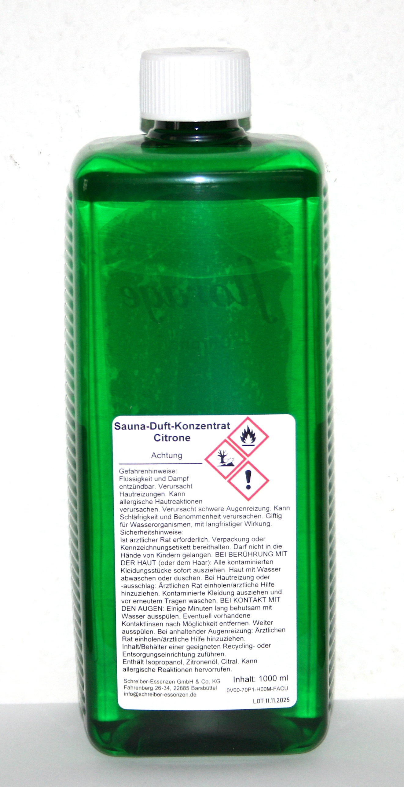 Lieferumfang: 1x 1000 ml Saunaduft-Konzentrat Zitrone