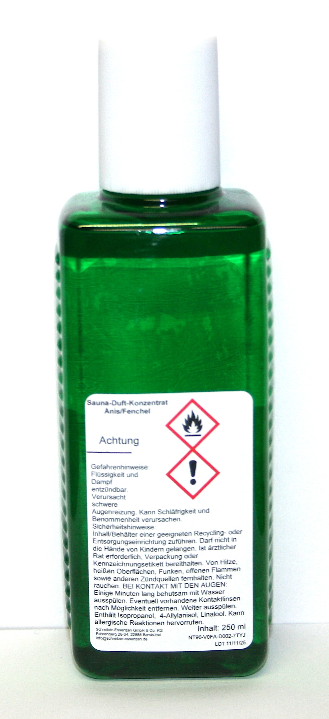 Lieferumfang: 1x 250 ml Saunaduft-Konzentrat Anis/Fenchel