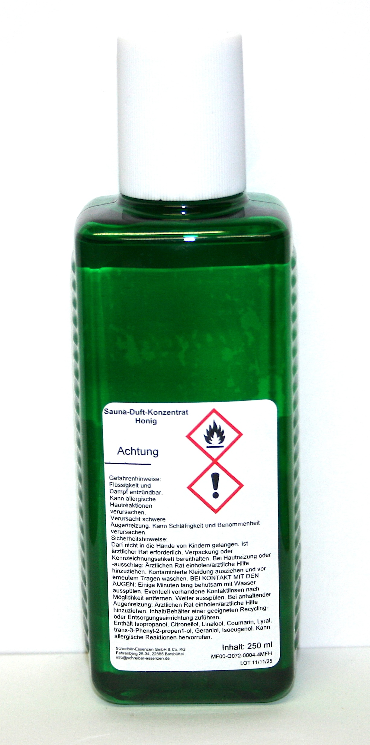 Lieferumfang: 1x 250 ml Saunaduft-Konzentrat Honig