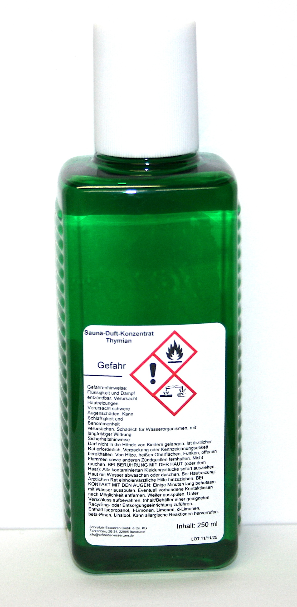 Lieferumfang: 1x 250 ml Saunaduft-Konzentrat Thymian