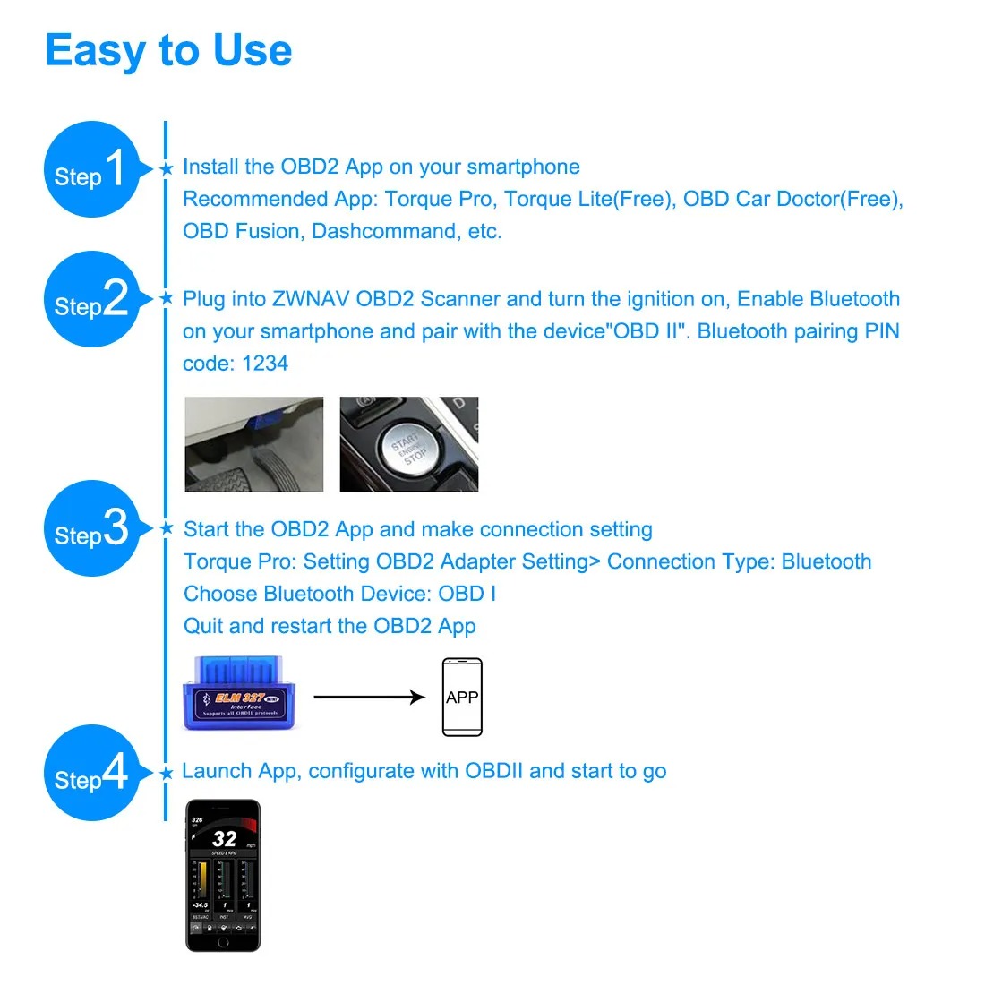 - Interface in die genormte OBD II-Schnittstelle im Auto (PKW, 12 V) stecken