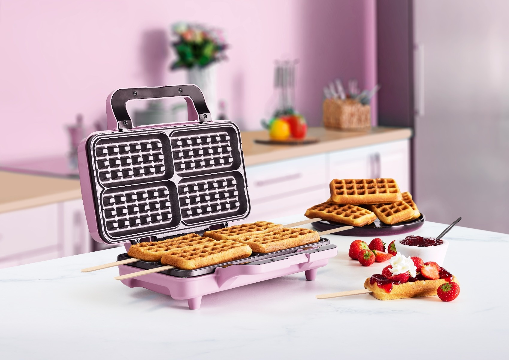 • Bereiten Sie im Handumdrehen vier köstliche Brüsseler Waffeln am Stiel zu