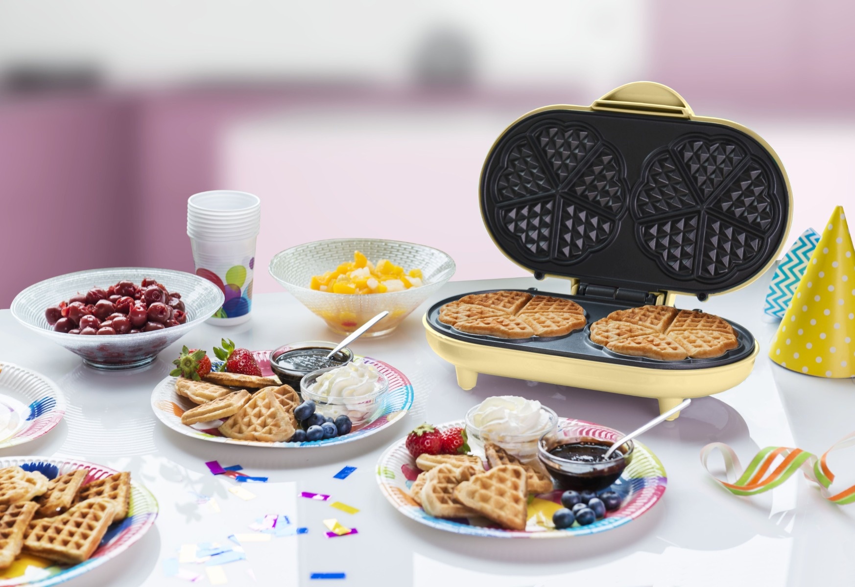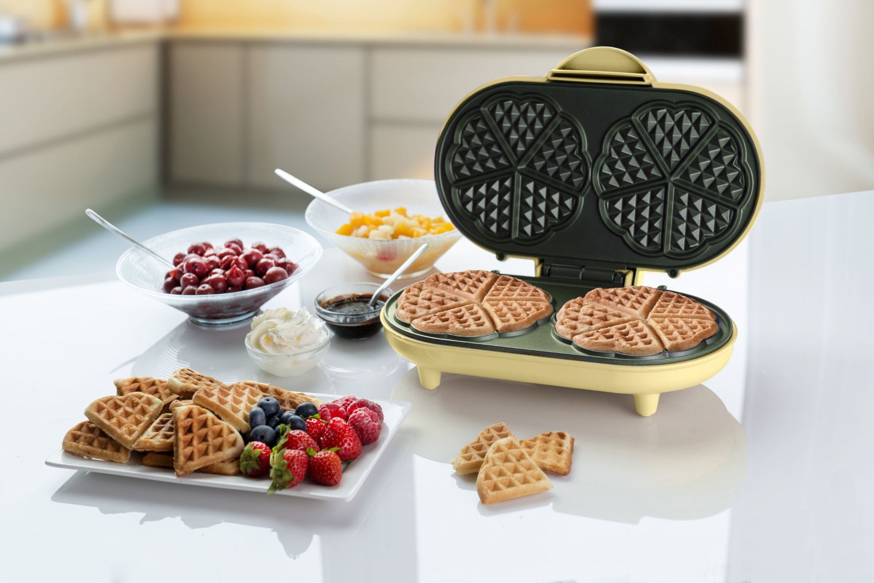 • Doppel Herzwaffelautomat für 2x5 herzförmige Waffeln
