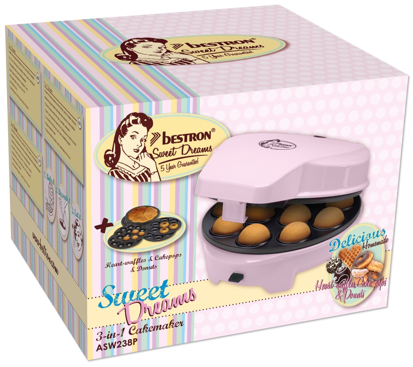 Weiterführende Links zu "Bestron ASW238P 3-in-1 Cakemaker Donut Waffel Cakepop, pink"