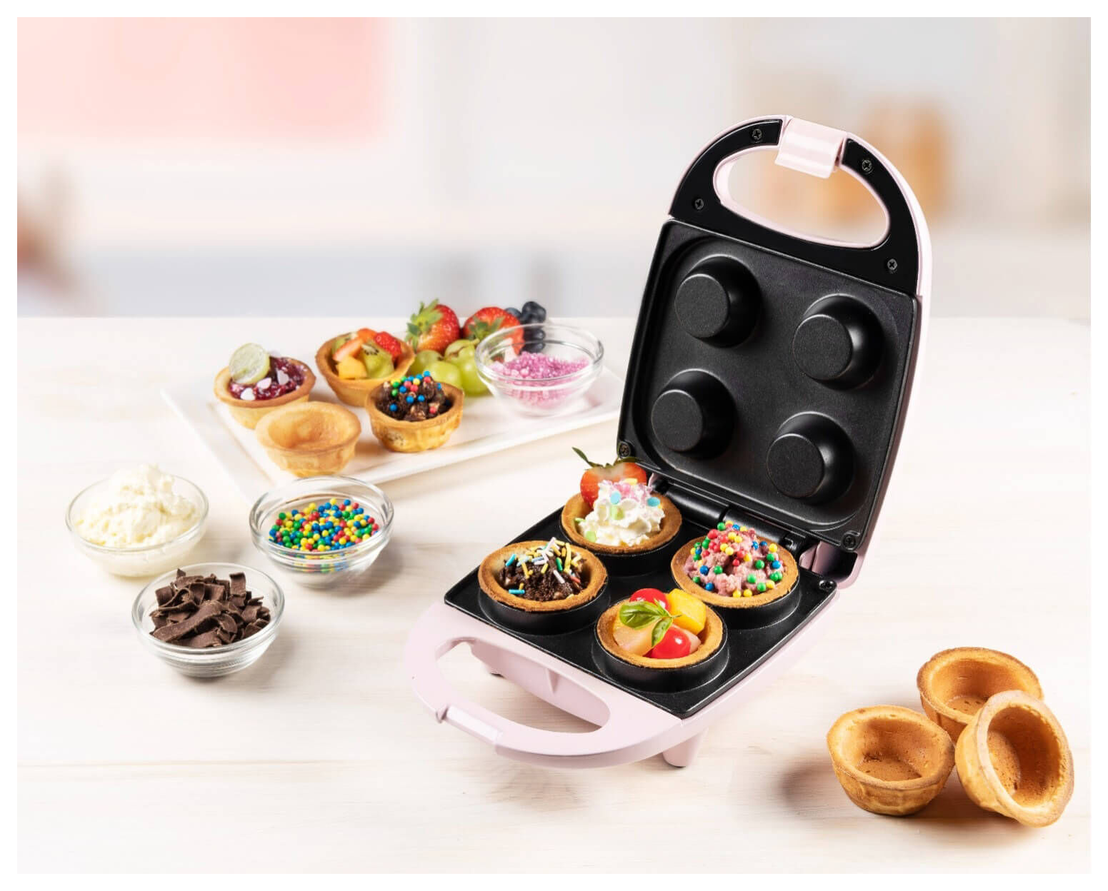• Waffelautomat für 4 Mini Waffelbecher/Eiswaffelschälchen
