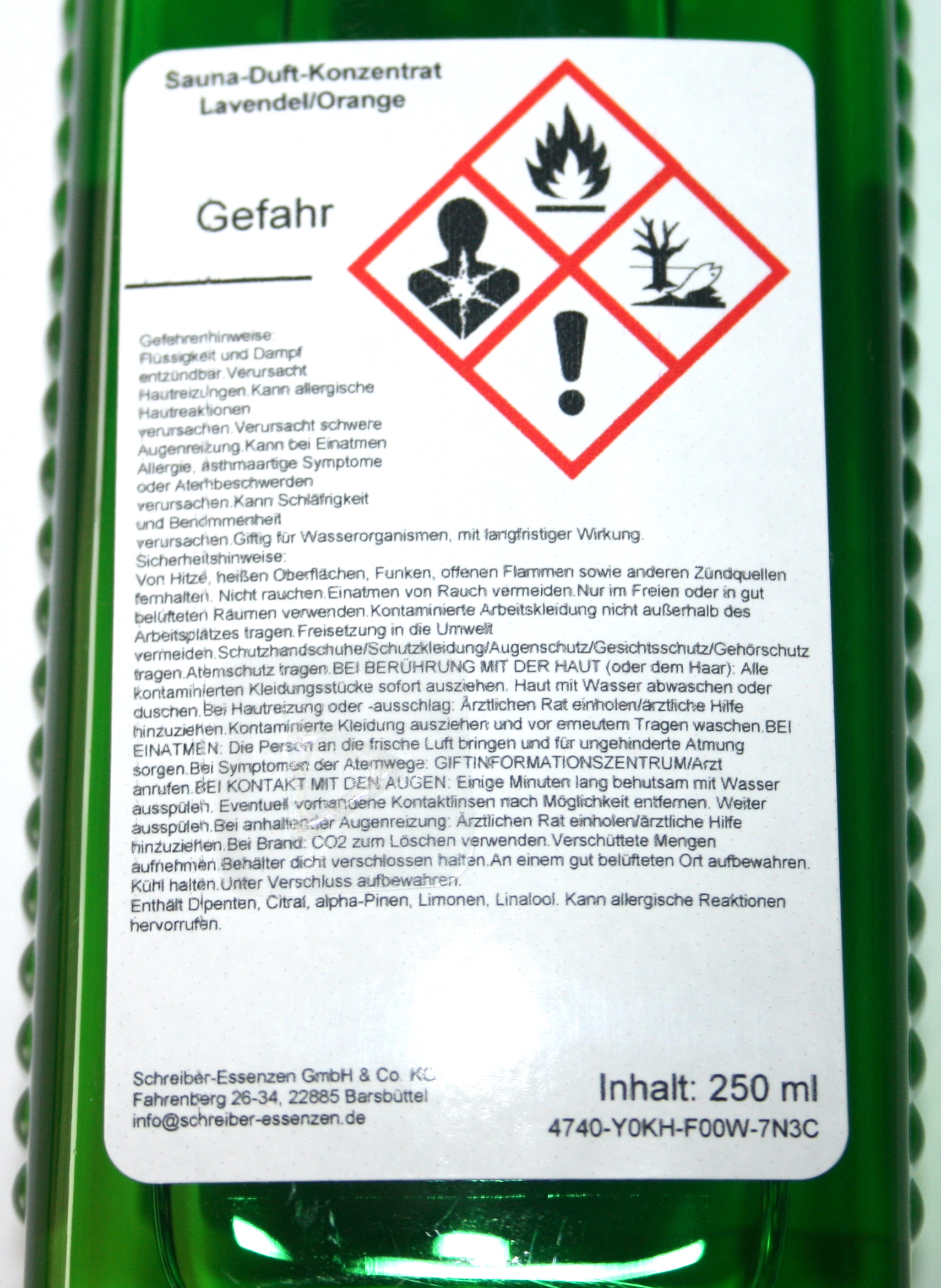 Lieferumfang: 1x 250 ml Saunaduft-Konzentrat Lavendel-Orange